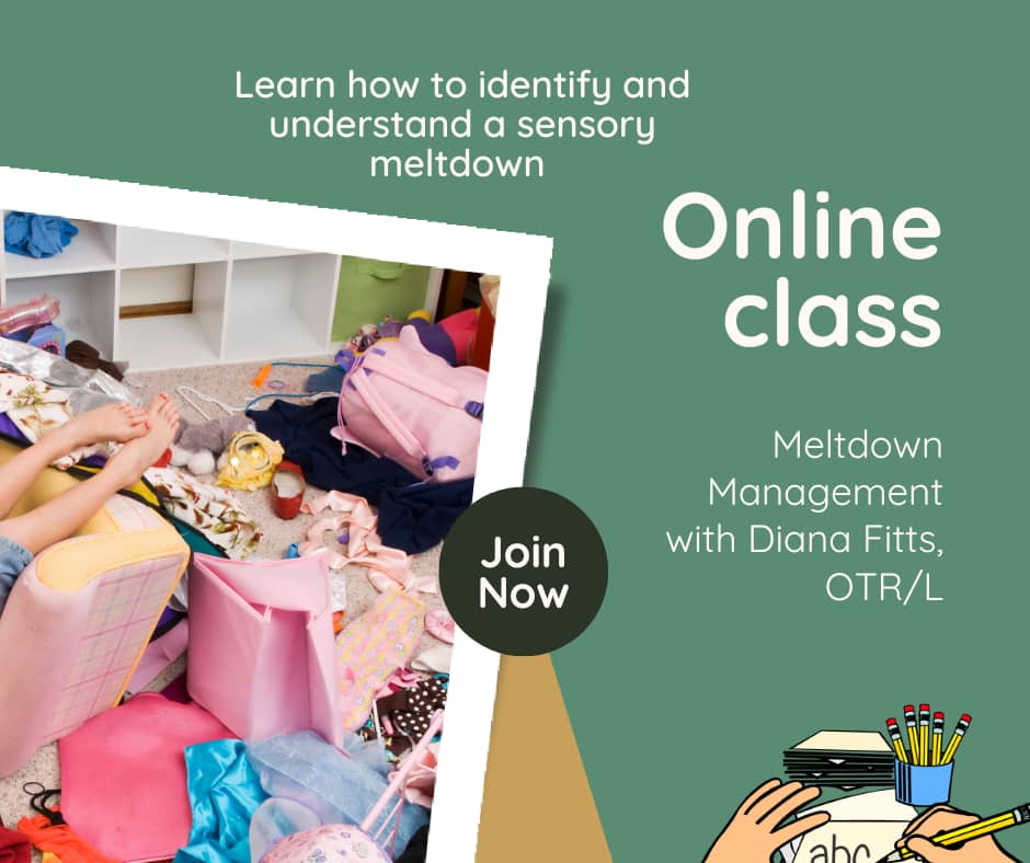 Hi Reader, We have 3 community support options coming up this week! Now might be a great time to get some comfort, learn from our team, and connect with one another whether at: Amber's in-person Autism Parent Support Group Diana's online class on Sensory Meltdowns Special Interest Group with Bonnie and Gabi (for ages 5-12). Here are the details for each of these events: Join our newest teammate from our merge with Thrive Outside, Diana Fitts, OTR/L for an informative and nurturing class on...